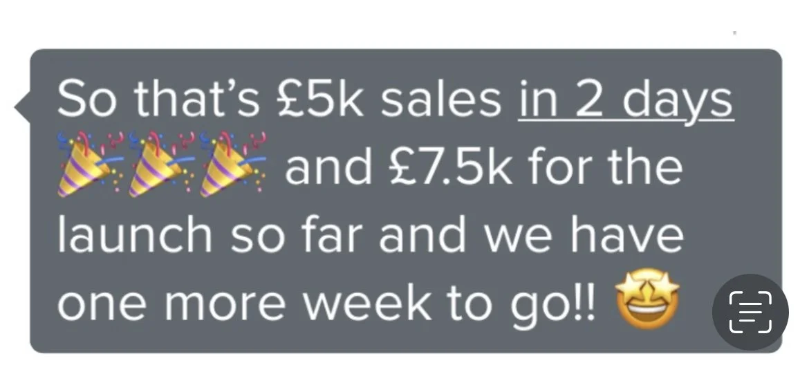 … it’s a strategically designed live training hosted by Amy & Chris who have invested 100’s of thousands learning from some of the world best sales trainers which allowed us to sell out our programmes and generate over £100k in sales in 30 days.